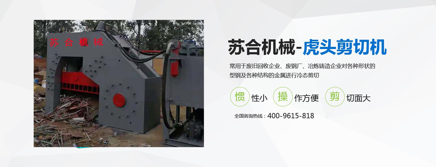 虎頭剪具有體積小、重量輕、慣性小、噪音低、動(dòng)作平穩(wěn)、操作方便、靈活、剪切斷面大、剪刀口調(diào)整方便等優(yōu)點(diǎn),操作使用安全。常用于廢舊回收企業(yè)、廢鋼廠、冶煉鑄造企業(yè)對(duì)各種形狀的型鋼及各種結(jié)構(gòu)的金屬進(jìn)行冷態(tài)剪切。剪切機(jī)的用途就是用來剪切定尺、切頭、切尾、切邊、切試樣及切除軋件的局部缺陷等。 滑縣蘇合機(jī)械制造有限公司性能穩(wěn)定,操作簡(jiǎn)單。歡迎來電咨詢 <了解更多>